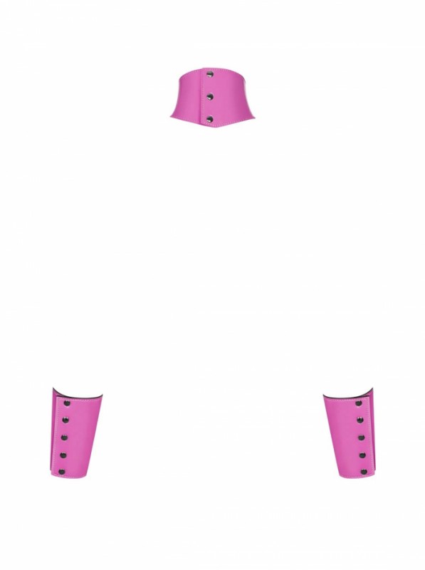 Выполненные из высококачественной экокожи в нежно розовом цвете широкий ошейник с кольцом и широкие манжеты-наручники - приведут в восторг каждую женщину! Между собой соединяются при помощи металлической цепи