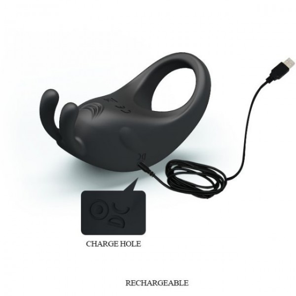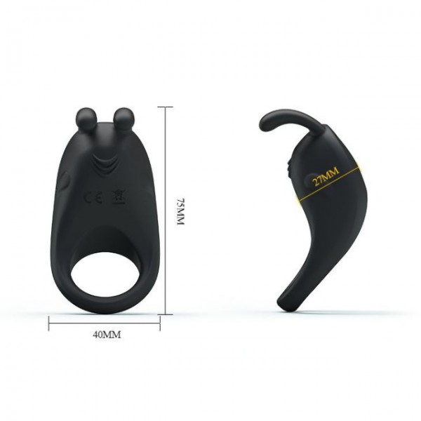 Эрекционное кольцо "Pretty Love Rabbit" с клиторальным стимулятором в виде зайки, черное
